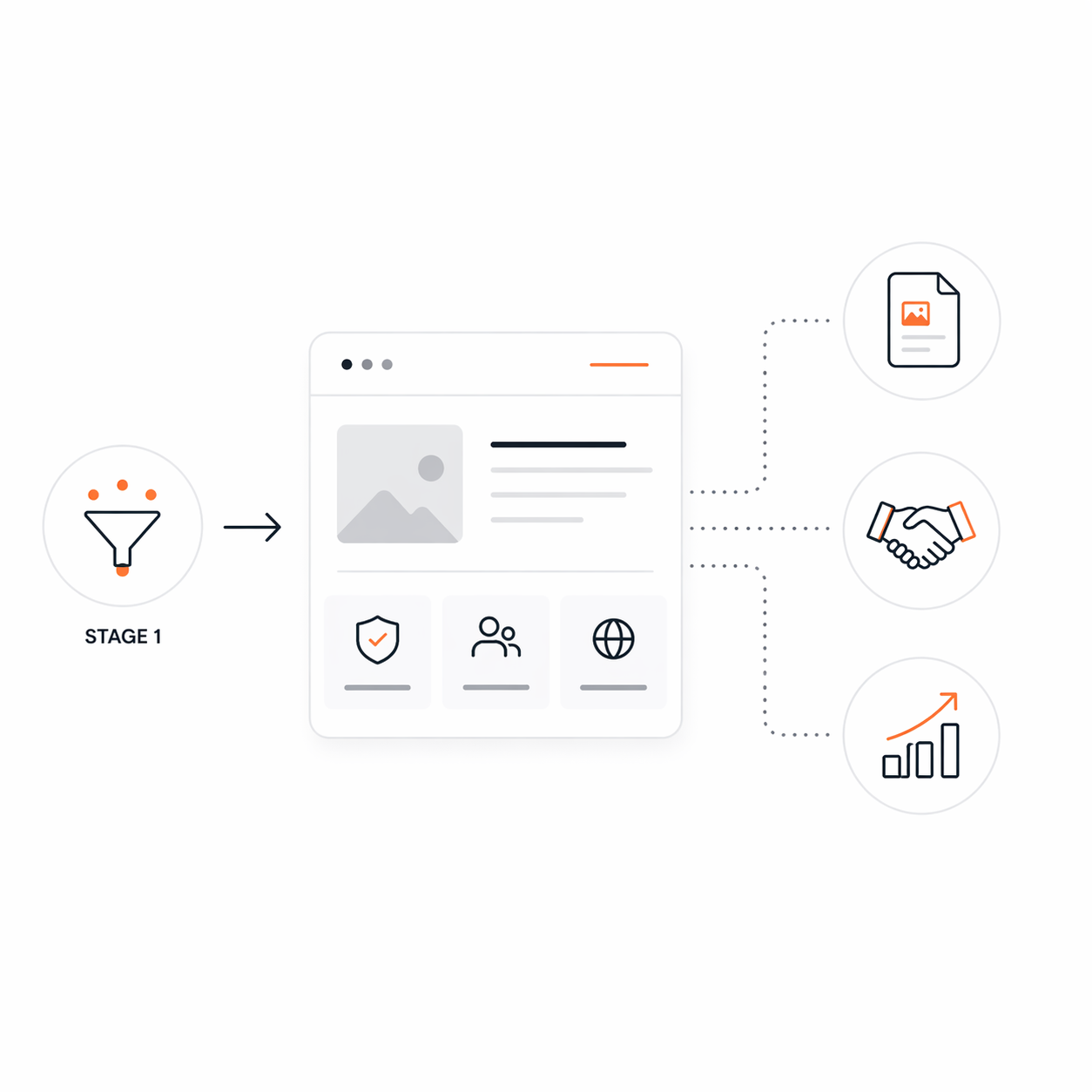 Stage 1 wdraża tam Twoją firmę poprzez zweryfikowany i uporządkowany punkt kontaktu zaprojektowany z myślą o pierwszej interakcji.