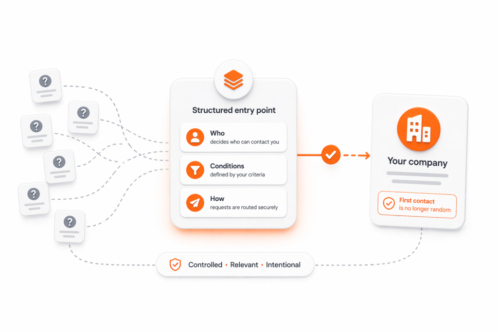 Zamiast reagować na niezweryfikowane zapytania, Twoja firma działa poprzez uporządkowany punkt wejścia w infrastrukturze platformy. To oznacza, że określone jest: