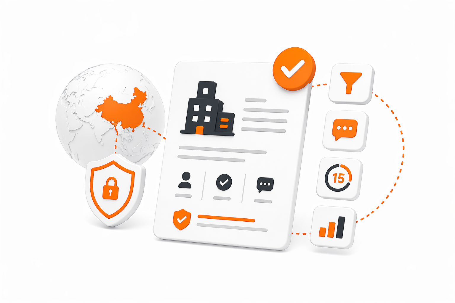 Stage 1 zapewnia Twojej firmie zweryfikowany i bezpieczny punkt kontaktu w ramach kontrolowanej infrastruktury platformy. To rozwiązanie zostało stworzone, aby ograniczyć ryzyko związane z pierwszym kontaktem oraz uporządkować i ustandaryzować sposób, w jaki chińskie firmy mogą nawiązywać z Tobą komunikację. Dzięki temu zyskujesz większą kontrolę, przejrzystość i bezpieczeństwo już na początkowym etapie współpracy.